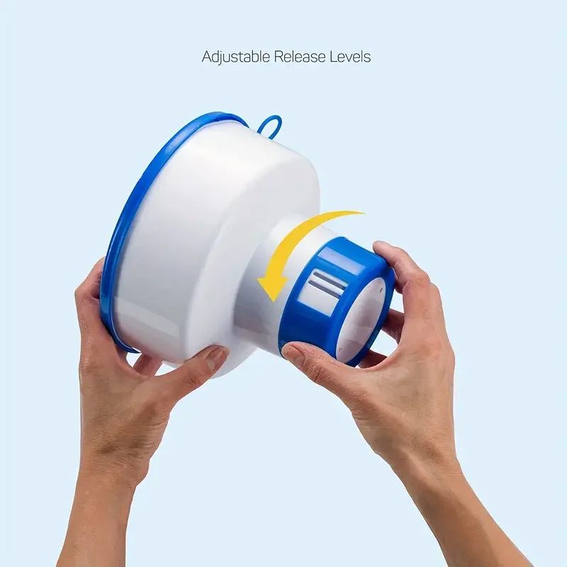 Este flutuador para comprimidos de piscina apresenta um design ajustável para atender a diferentes tipos de piscinas, permitindo fácil acomodação da maioria dos comprimidos de cloro.