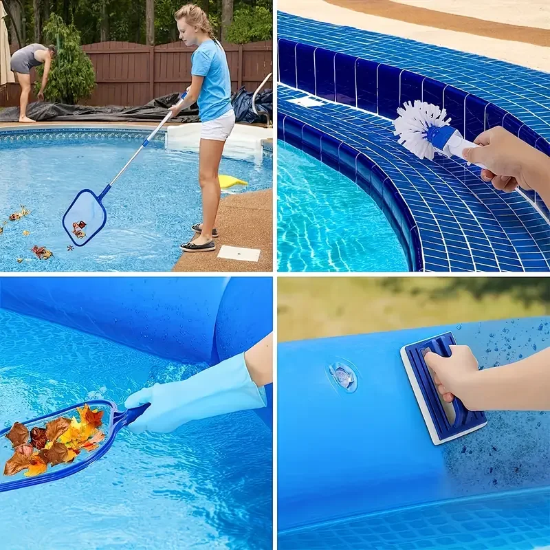 1 x escova de esponja, 1 x escova portátil, 1 x conjunto de rede para skimmer de folhas de piscina